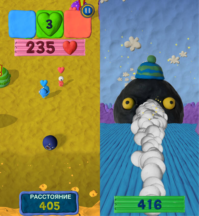 Условно игру можно назвать раннером, хотя эта игра нечто большее, ведь вы не меняете полосы, вы «рисуете» канавки на пластилиновом поле, по которым и будет катиться ваш герой. Можно катиться вперед, вбок и даже назад, если вам позволит время и вас не накроет пластилиновой лавиной.