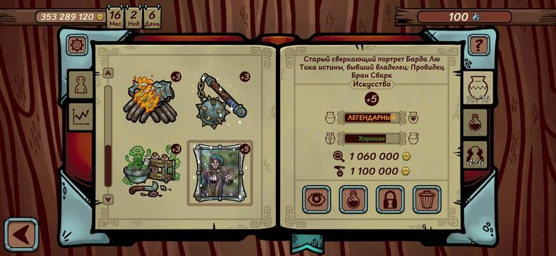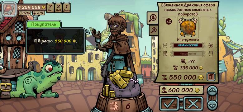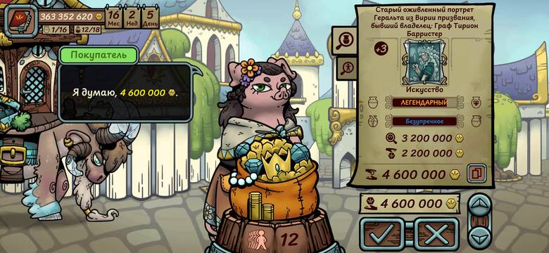 А еще вместо подделок теперь есть проклятые предметы. Если покупатели их увидят, то также откажутся от покупки, а еще на вас донесут страже. Также у вас есть шкала, по которой можно увидеть преданность императору. По ощущениям, она ни на что не влияет, но, возможно, будет отличаться концовка.