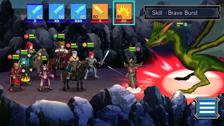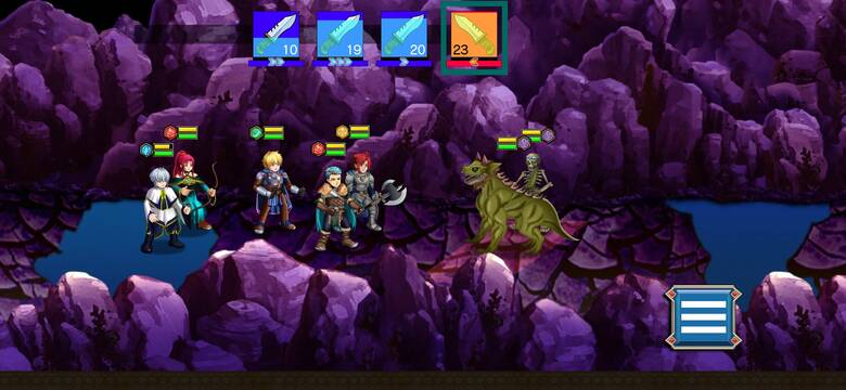 Периодически вы будете вступать в сражения, которые выполнены до ужаса просто: ваши герои и враги могут сражаться в три ряда, каждый ряд обладает своей скоростью атаки. Когда шкала атаки заполняется, вы или враг атакуете друг друга. Вы же можете выбрать, как именно они будут атаковать(простой атакой или умением) или подлатать раненых. Вот собственно, и вся тактика.