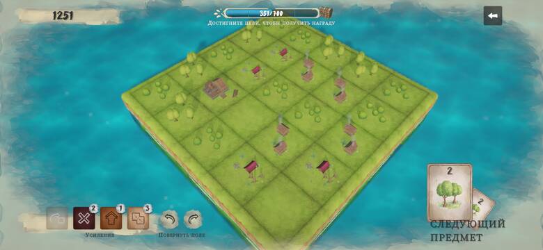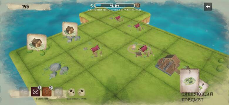 Цель игры – получить как можно больше очков в условиях ограниченного пространства. При этом есть три режима, в двух из которых пространство для стройки фиксированное(5*5 и 7*7), а в третьем режиме вы, выполняя задания, будете расширять территорию. Задания простейшие и заключаются в том, чтобы возвести определенное строение в нужном месте.