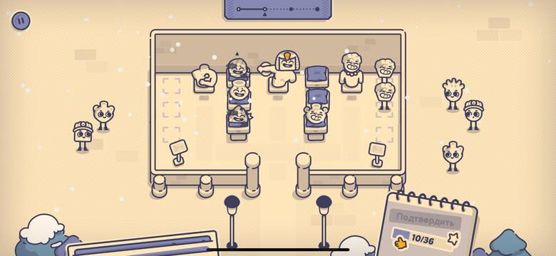 Графика в игре простенькая, но сделана она со вкусом. Множество персонажей, которые выглядят одинаково и на фоне которых Слава и компания сильно выделяются. Ну и цветовая гамма хорошо подобрана, бежевые цвета настраивают на спокойное решение головоломок.