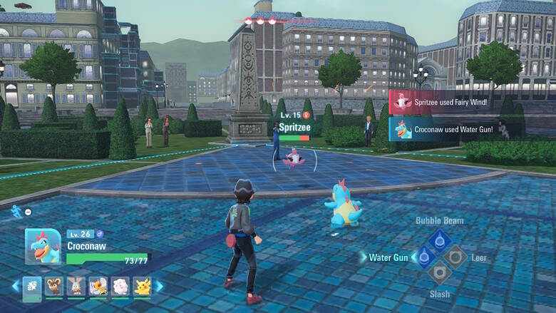 Также, вы сможете сражаться с дикими покемонов, которые совсем страх потеряли в своих «Диких зонах», расположенных прямо в черте города. Механики для ловли взяты прямиком из «Arceus»: вы можете подкрасться к покемонам и поймать их, не вступая в бой, бросая покеболы. Если вам не удастся это сходу, тогда придется сражаться(или же покемоны удерут).