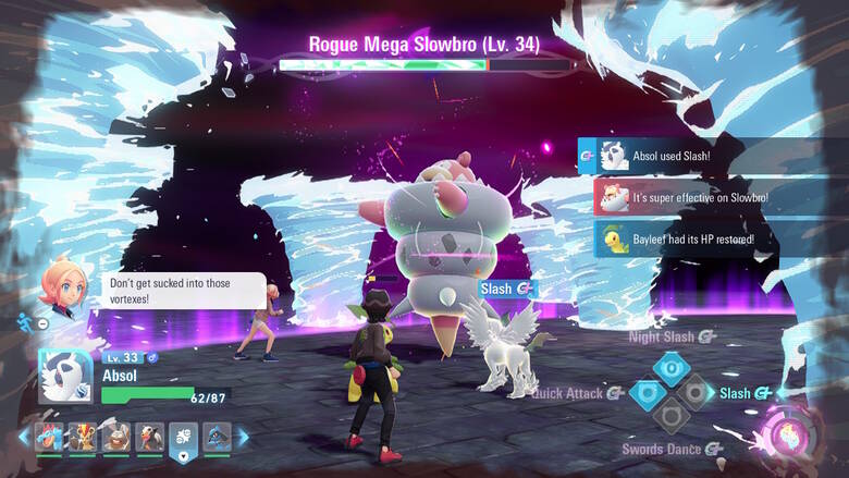 Но это не относится к моментам, когда дикие покемоны произвольно мега-эволюционируют. Битвы с ними затяжные и с ними придется побегать, ведь бьют они больно, а здоровья хватит и на трех-четырех простых покемонов.