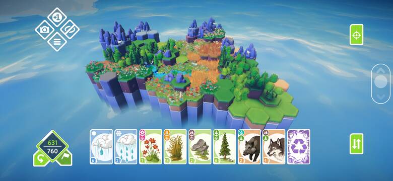 Графика в игре тоже хороша, ведь карты прямо у вас на глазах оживают и превращаются в элементы природы, потом они становятся больше, когда вы объединяете их в группы, потом по ним начинают бродить животные, которых вы в них расселяете…