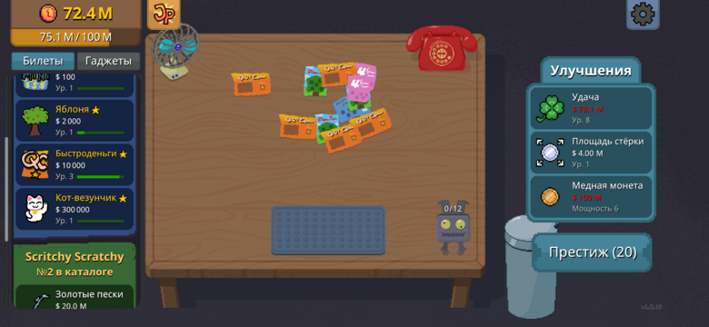 Также вы можете прокачать монету для улучшения площади и силы стирания защитного слоя, и это важно делать, чтобы не мучаться с одним билетом пару минут.