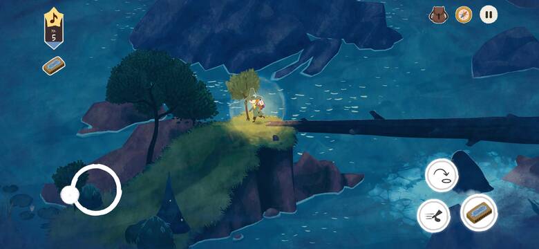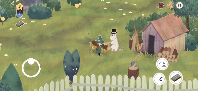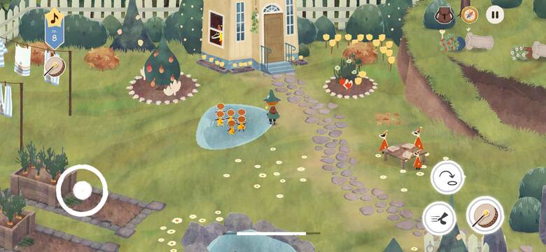 Но вот геймплей, как я уже сказал, вызывает вопросы. Сначала Снуснумрик предстает перед нами музыкантом, который благодаря вдохновению и музыке может сдвинуть горы, животных и птиц. И это будет нашей основной задачей: путешествовать по Муми-Долу, собирать источники вдохновения и использовать силу трех музыкальных инструментов для того, чтобы воздействовать на различные объекты и персонажей: губная гормошка вдохновляет, флейта усыпляет, а барабаны разбудят и прогонят все, что угодно.